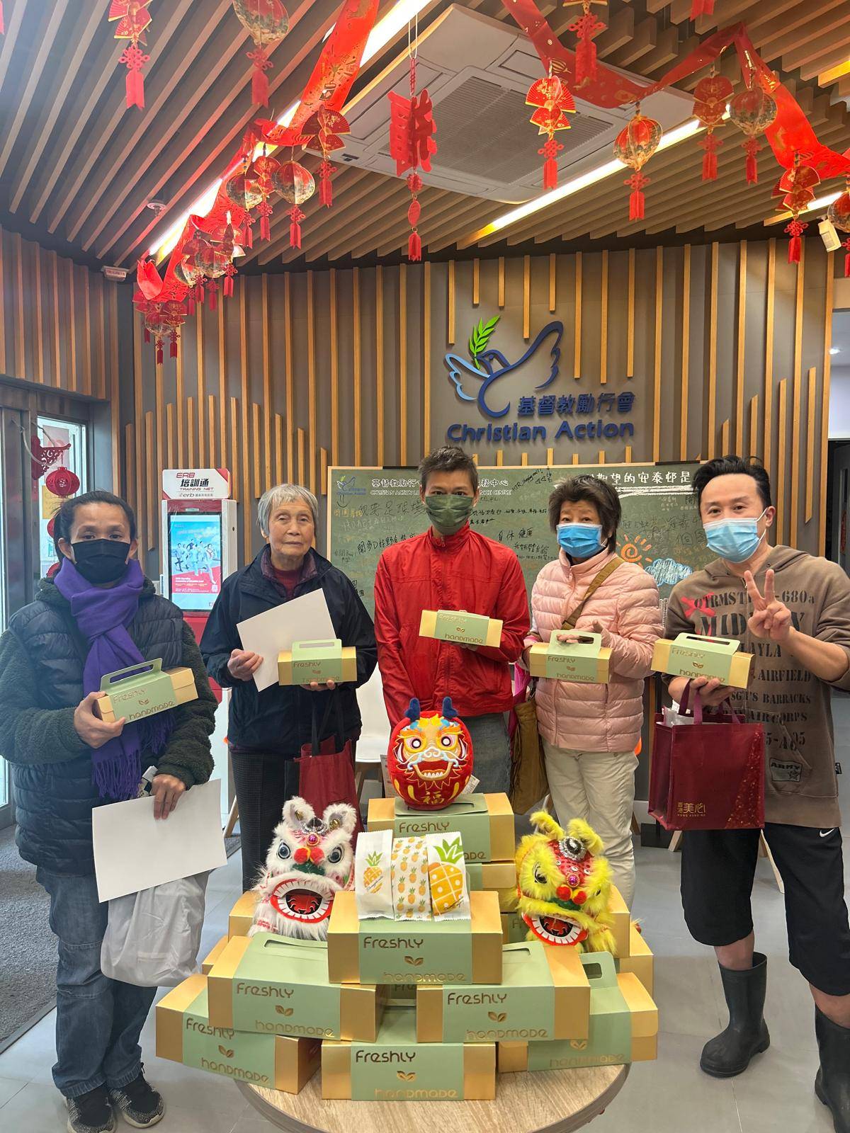 Access to Chung Ying Street requires a special permit from the Hong Kong Police Force. For many participants, this was their first time visiting this restricted area, and the opportunity to spend the morning there alongside a team of caring volunteers brought much excitement and joy. Most attendees were elderly individuals, many of them living alone or with an elderly spouse. Some were in wheelchairs, while others joined the activity along with their multigenerational family.